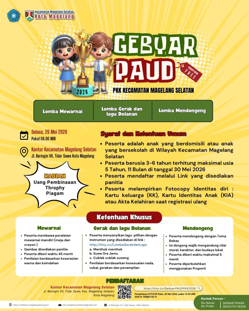 Gebyar PAUD Kecamatan magelang Selatan Tahun 2026 akan segera dimulai ‼️